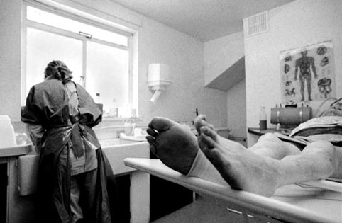 Sheila makes sure her ‘patient’ is strategically covered while she works; so she can “keep her dignity” she says. She then proceeds to place the stethoscope, hanging around her neck, carefully into her ears and onto the chest of the body lying in front of us…… She listens intently, trying genuinely to listen out for a heart beat.… “Murder carries a heavy sentence in this country and if these people weren’t dead before they came in they certainly would be when they left.” |